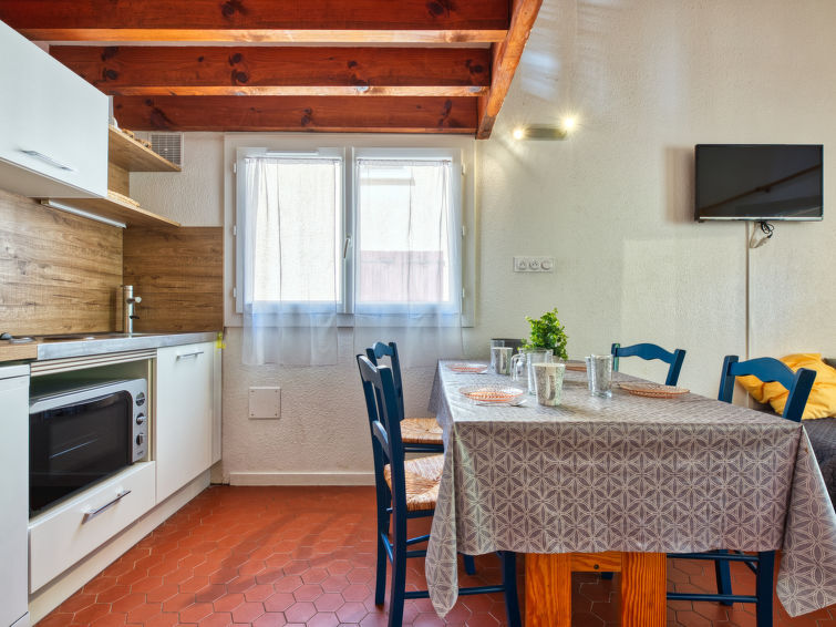 Huis in een rij 1-kamer 40 m2 op 2 verdiepingen. Woon-/eetkamer met 2 bedden (90 cm, lengte 190 cm), TV. Open keuken (2-pits kookplaat, oven, afwasmachine, broodrooster, waterkoker, magnetron, elektrische koffiemachine). Douche/WC. Elektrische verwarming. Bovenverdieping: galerij met 1 2-pers bed (2 x 80 cm, lengte 200 cm). Terras, op het zuidoosten gelegen, zithoek in de tuin. Terrasmeubelen, ligstoelen (2). Ter beschikking: wasmachine. Internet (Internet (WiFi), extra). Parkeerplaats. Niet rokers woning. Rookmelders. In plaats van een afgesloten slaapkamer bevinden sommige slaapgedeeltes zich in een open ruimte (galerij, nis, etc.).