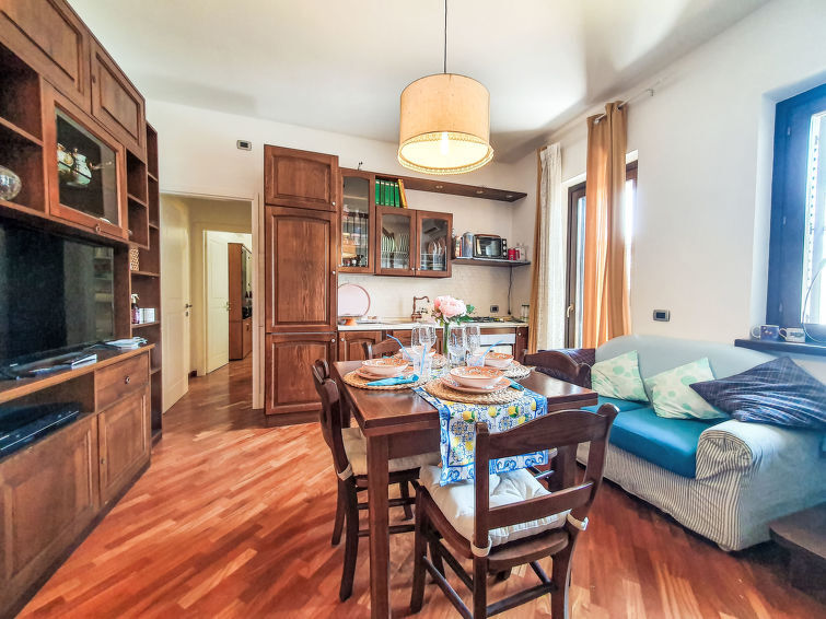 "Rosie Holiday", appartement 3-kamers 100 m2 op 2 verdiepingen op de 4e verdieping. Gedeeltelijk afgeschuinde daken, comfortabel en gezellig ingericht: woon-/eetkamer met TV, air-conditioning en heteluchtverwarming. Uitgang naar het terras. 1 2-pers. kamer met air-conditioning. Uitgang naar het terras. Kookhoek (mini-oven, afwasmachine, 4 kookpitten (vlammen), broodrooster, waterkoker, elektrische koffiemachine). Douche/bidet/WC. Bovenverdieping: groot woon-/slaapkamer met afgeschuinde daken, hoogte van het plafond 120 - 280 cm met 1 2-pers bed, TV, air-conditioning en heteluchtverwarming. Uitgang naar het terras. Verwarming, heteluchtverwarming. Verwarming alleen beschikbaar van 01.12. tot 31.03. Parketvloeren. Terras 12 m2 gedeeltelijk overdekt terras 8 m2. Terrasmeubelen. Beperkt uitzicht in de verte op zee en de plaats. Ter beschikking: wasmachine, kluis, strijkijzer, kinderbed tot 2 jaar (extra), haardroger. Internet(WiFi), gratis). Parkeerplaats (omheind, 2 Auto's). Rookvrij huis. Rookmelders, brandblusser. IT089017C2CZ8J9TT9