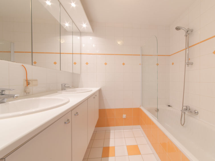 "Meiboom 503", appartement 3-kamers 120 m2 op 2 verdiepingen op de 5e verdieping. Ruim, doelmatig ingericht: open woon-/eetkamer met eettafel, TV en internationale TV-zenders (Flatscreen TV), DVD en elektrische verwarming. Keuken (afwasmachine, 4 keramische glas kookplaten, diepvriezer, elektrische koffiemachine, combimagnetron) met eettafel. Aparte WC. Elektrische verwarming. Bovenverdieping: 1 kamer met 1 bed (180 cm, lengte 200 cm). 1 kinderkamer met 1 x 2 stapelbedden (90 cm, lengte 200 cm). Bad/douche, aparte WC. Balkon 4 m2, op het noordwesten gelegen. Uitzicht op zee en De duinen. Ter beschikking: wasmachine, droger, kinderstoel, haardroger. Internet (Internet (WiFi), gratis). Garage nr. 10 (kleine wagen) (1 Auto) op 100 m. Rookmelders, brandblusser.