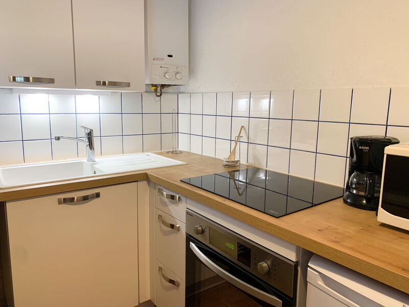 Appartement 2-kamers 27 m2, op de begane grond. Woon-/eetkamer met 1 2-pers divanbed (130 cm, lengte 200 cm), TV. Uitgang naar de loggia. 1 kamer met 1 2-pers bed (140 cm, lengte 190 cm). Kookhoek (4-pits kookplaat, oven) met doorgeefluik. Badkamer, aparte WC. Terras 20 m2, zithoek in de tuin. Loggia. Ter beschikking: Internet (Internet (WiFi), extra). Parkeerplaats. Koelkast zonder vriesvak. Rookmelders.