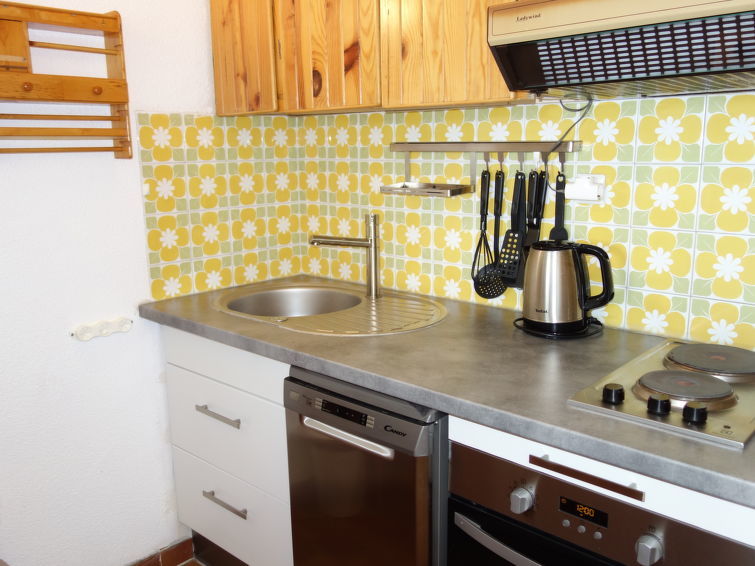 Appartement 2-kamers 35 m2 op de 2e verdieping. Woon-/eetkamer met 1 uitschuifbaar bed (2 pers. 2 x 80 cm, lengte 190 cm), TV. Uitgang naar het terras. 1 kamer met schuifdeur met 1 2-pers bed (140 cm, lengte 190 cm). Uitgang naar het terras. Kookhoek (oven, afwasmachine, 2 keramische glas kookplaten, magnetron, elektrische koffiemachine). Bad/WC. Elektrische verwarming. Terras 9 m2, overdekt, op het westen gelegen. Terrasmeubelen. Mooi uitzicht op zee. Ter beschikking: wasmachine, strijkijzer. Internet (Internet (WiFi), extra). Parkeerplaats nr. 574. Maximaal 1 klein huisdier/hond toegestaan. TV alleen FR. Rookmelders. Let op: het bad is klein (lengte: 108 cm). 83112 000275 84