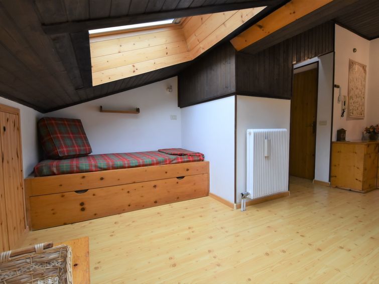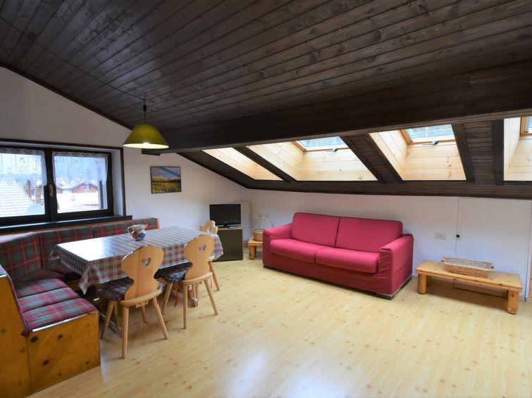 "Apt 47", appartement 2-kamers 45 m2 op de 3e verdieping. Afgeschuinde daken, doelmatig en comfortabel ingericht: woon-/eetkamer met 1 2-pers divanbed, eettafel en TV (Flatscreen TV). 1 2-pers. kamer met afgeschuinde daken. Kleine keuken (oven, afwasmachine, 4 inductiekookplaten, magnetron). Douche/bidet/WC. Parketvloeren. Uitzicht op de bergen en het dal. Ter beschikking: wasmachine, haardroger. Geschikt voor families. Niet rokers woning. Brandblusser, geen lift. IT022039C2SDLCUMD3