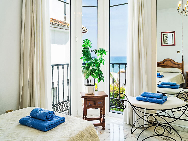 "Mijas Beach", huis in een rij 4-kamers 230 m2 op 2 verdiepingen. Het objekt is geschikt voor 6 volwassenen + 2 kinderen. Gedeeltelijk gerenoveerd in 2016: woon-/eetkamer 40 m2 met 1 2-pers divanbed (135 cm, lengte 190 cm), Digitale TV, air-conditioning en heteluchtverwarming. Uitgang naar het terras. Keuken (oven, afwasmachine, 4 keramische glas kookplaten, magnetron, diepvriezer). Aparte WC. Vloerverwarming. Bovenverdieping: 1 kamer met 1 2-pers bed, bad/bidet/WC, wastafel en TV. Uitgang naar het terras. 1 kamer met 2 bedden en TV. Uitgang naar het terras. 1 kamer met 2 bedden. Bad/bidet/WC. Vloerverwarming. Terras 20 m2. Uitzicht op zee. Ter beschikking: wasmachine, kinderstoel, kinderbed. Internet (WiFi, gratis). Parkeerplaats. VUT/MA/10340 // Reg. Nr.: ESFCTU0000290440001288710000000000000000VUT/MA/103401