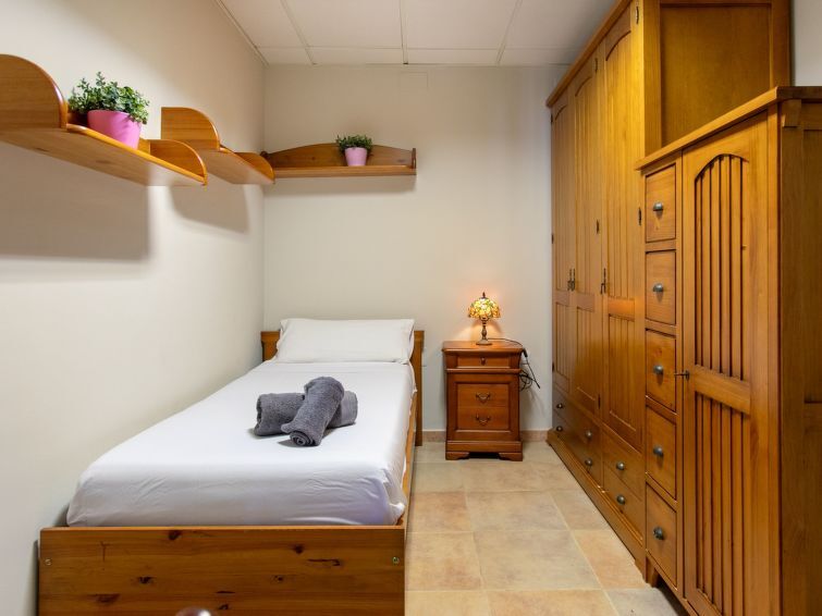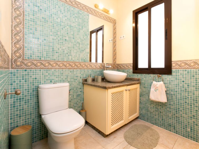 "Surinam", huis 6-kamers 250 m2, op het oosten gelegen. Eenvoudig en comfortabel ingericht: woonkamer met Digitale TV. Uitgang naar het terras. Woonkeuken (oven, afwasmachine, 3 keramische glas kookplaten, broodrooster, waterkoker, magnetron, diepvriezer, elektrische koffiemachine). Aparte WC. Boiler (80 liter). Souterrain: 1 kamer met 1 bed (90 cm, lengte 190 cm). 1 kamer met 4 bedden (90 cm, lengte 190 cm). Douche/WC. Bovenverdieping: 1 kamer met 1 2-pers bed (1 x 150 cm, lengte 200 cm), bad/WC. Uitgang naar het terras. 1 kamer met 1 bed (90 cm, lengte 190 cm). 1 kamer met 2 bedden (90 cm, lengte 190 cm). Bad/WC. Zithoek in de tuin. Terrasmeubelen, barbecue, ligstoelen (2). Uitzicht op zee en de bergen. Ter beschikking: wasmachine, strijkijzer, haardroger. Internet (WiFi, gratis). Garage op het terrein. TV alleen ES. VUT/MA/83899